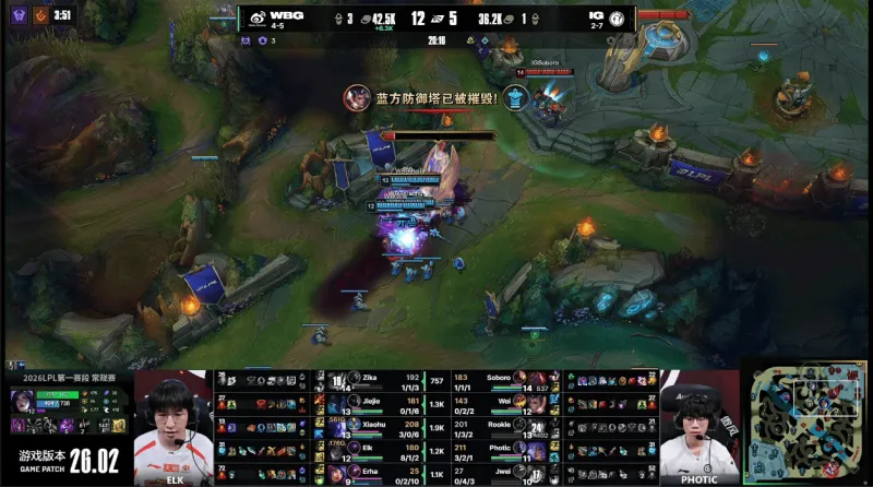虎扑02月06日讯 GAME1:WBG蓝色方;IG红色方